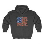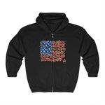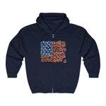 Retro Flower American Flag Zip Hoodie – Vintage USA Patriotic 4th of July Style for Women Who Love Freedom